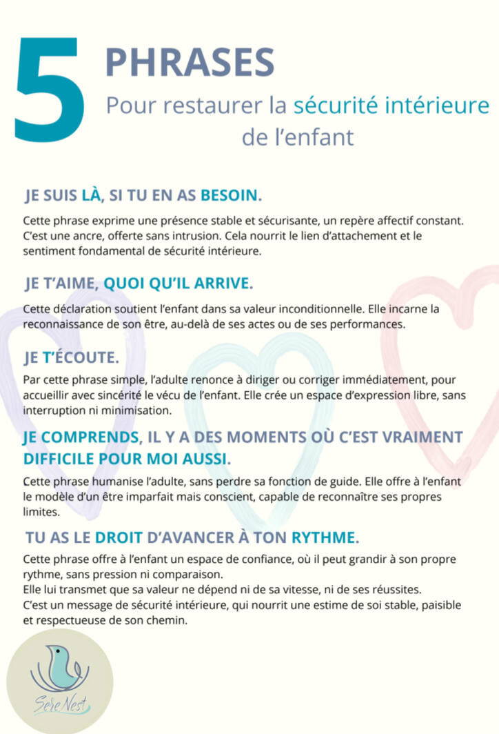 Chez SereNest, nous croyons que chaque parent et chaque enseignant mérite des outils concrets et accessibles pour avancer plus sereinement au quotidien. C’est pourquoi nous mettons à votre disposition des ressources gratuites à télécharger : affiches, cartes, fiches pratiques et rituels.