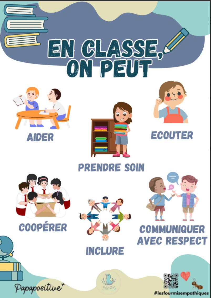 Une affiche qui vise à promouvoir les comportements positifs en classe.