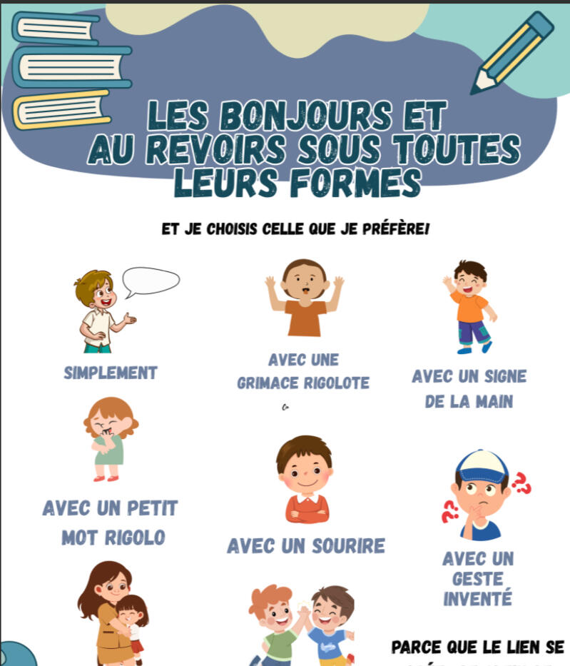 En classe, on peut se dire bonjour et au revoir de beaucoup de manières. Pourquoi ne pas laisser l'élève choisir ?