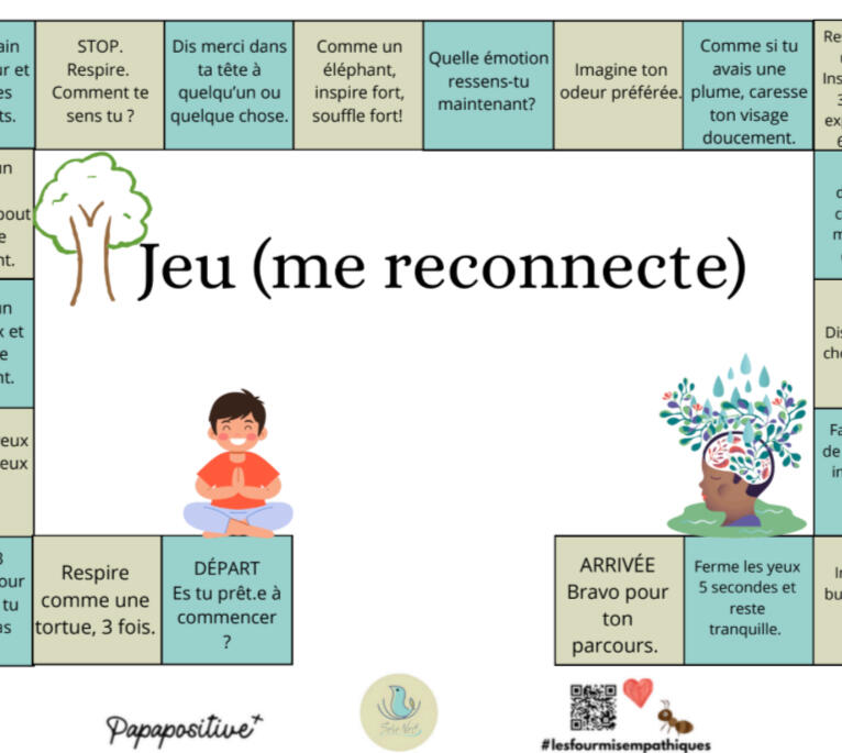 Jeu (me reconnecte) est un jeu qui vise à pratiquer de façon douce la pleine conscience avec les enfants ou les élèves en classe.